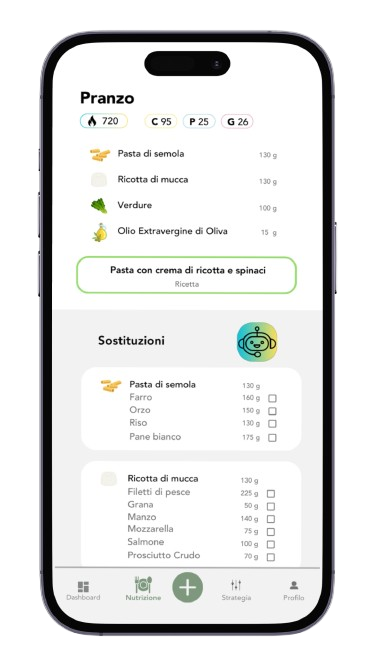 Crea piani nutrizionali su misura per te, adattati in tempo reale al tuo stile di vita, preferenze e attività fisica, sia amatoriale che agonistica.