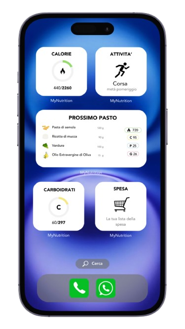 MyNutrition ti propone widget personalizzabili per iOS che rendono il servizio più intuitivo e accessibile direttamente dal tuo sfondo.